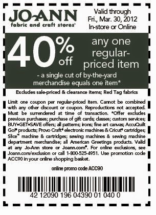 Joann Fabrics: 50% Off Printable Coupon - Hunt4Freebies Joann Fabrics has a 50% off Printable Coupon off any regular-priced item. *Valid through 01/23/2010. You can Also Follow Us On Facebook, Twitter, Pinterest, Instagram and Telegram for 24 hour freebie updates and more!